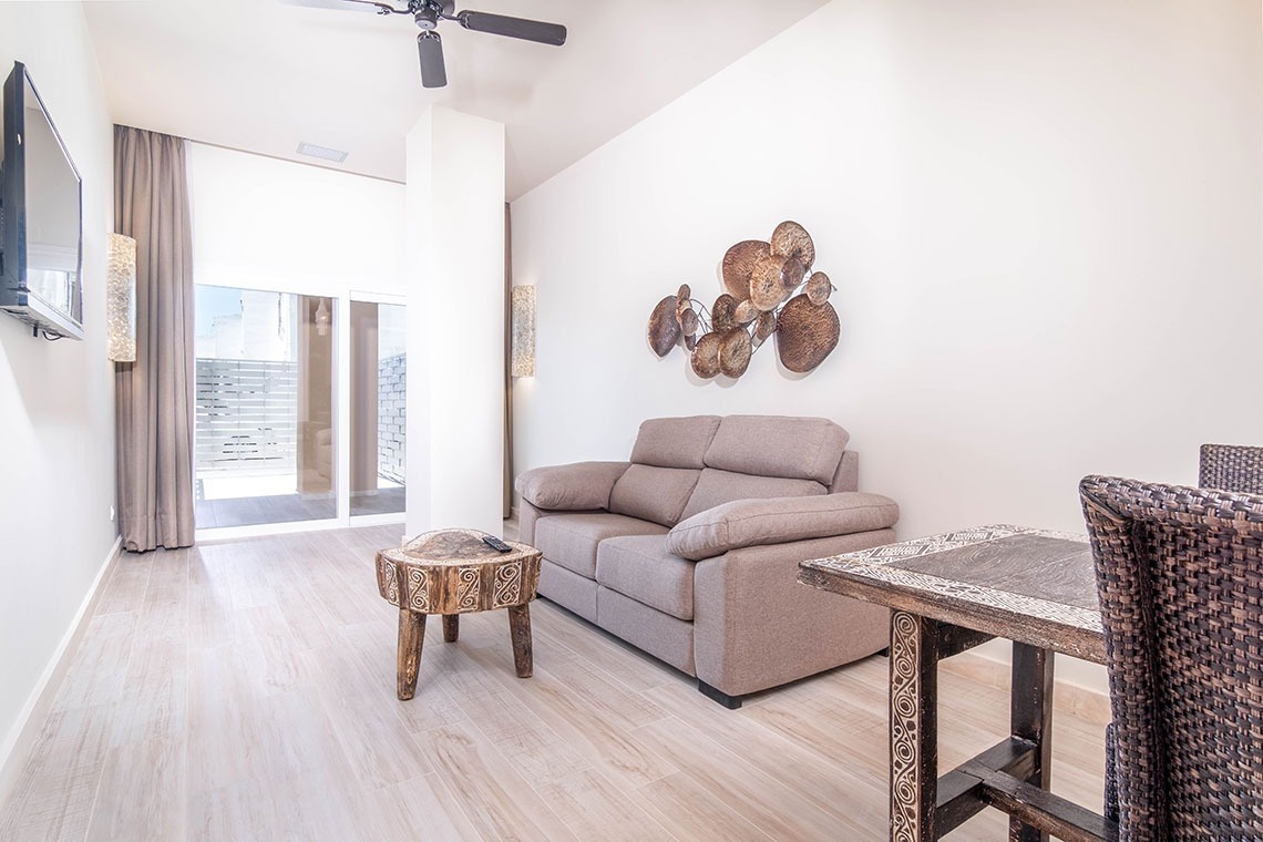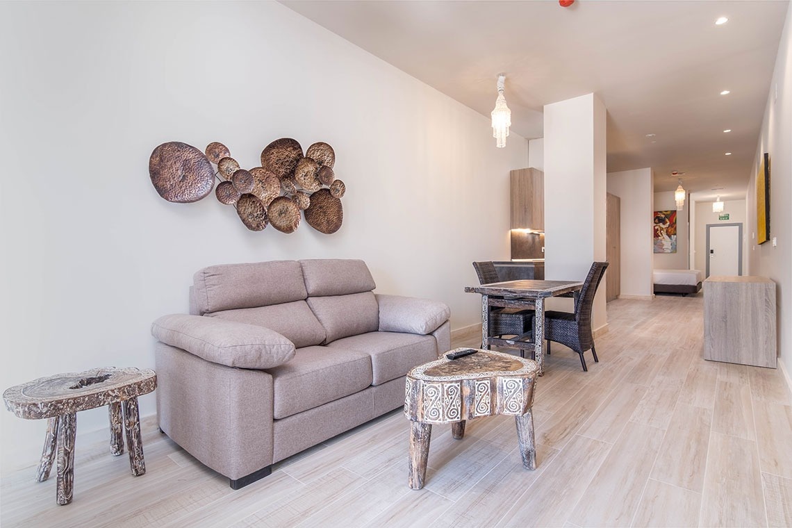 Estudios estándar de 30 m2 están preparados para el alojamiento de dos personas, cuentan con salón-dormitorio con cocina integrada y baño independiente. Están equipados con cama doble de 180 cm (con opción de separar en dos camas de 90 cm), televisor de pantalla plana, armario-ropero, cocina americana equipada con horno-microondas, placa de inducción, nevera, lavadora y todo el menaje necesario para la preparación y consumo de alimentos.
